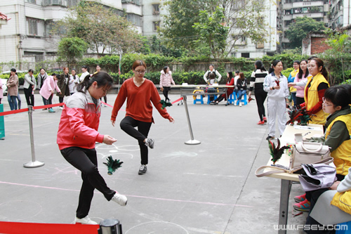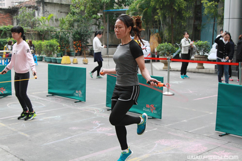 “计时—开始!”比赛在裁判员的发令声中正式开始,跳绳踢毽子比赛同时进行,两两pk,一时间五颜六色的毽子在大家的脚上开起了一朵朵鲜艳的花;彩绳在空中轻盈的飞舞,发出“嗖嗖”的声音,整个比赛场面欢快激烈,紧张有序,这次跳绳踢毽子活动紧张、激烈、有趣,让我院的女同胞们在运动中度过一个充实有趣的节日,并在运动中体会快乐,锻炼身体。