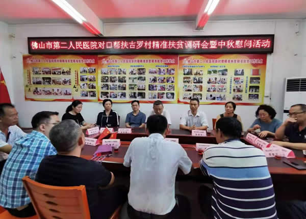 9月10日,佛山市第二人民医院副院长张武率队到对口帮扶古罗村调研指导精准扶贫工作及开展中秋慰问活动。佛山市扶贫办驻县组副组长罗烁潘、佛山市第二人民医院驻村第一书记兼驻村工作队队长梁文福及村“两委”干部陪同。