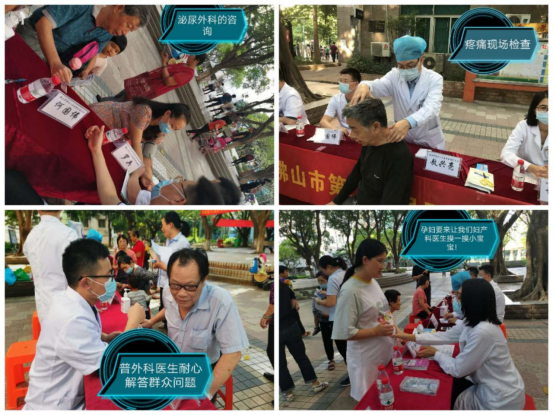 参与本次活动的有疼痛科主任敖兴亮主任医师、重症医学科主任霍保善主任医师、泌尿外科何国伟副主任医师、妇产科许淑仪主治医师、胃肠外科罗兵主治医师等。现场,医护人员热心耐心细心为前来的市民朋友们提供健康咨询、健康知识宣教、疾病预防宣教等服务。疼痛科现场为市民提供即时检查及疼痛的保健指导,妇产科为产妇进行孕期健康指导及产检的注意事项,大外科李俭欢护长为市民测量血压、重症医学科护长刘影为市民测量血糖,并一起为市民们提供健康知识咨询服务。引来大批市民排起“长龙”,现场场面火爆。