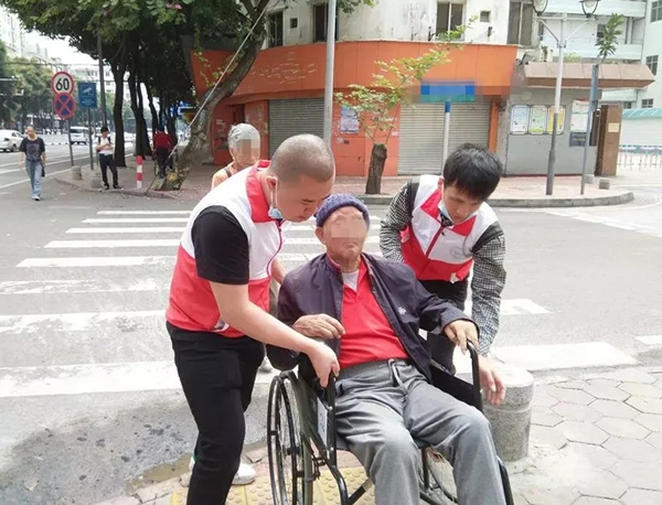耄耋老人正是黄婆婆,她说自己的老伴刚在市二医院透析完,她要推他回家,家住在佛山乐园附近。佛山乐园距离市二医院并不远,脚步快的年轻人十来分钟就走到了,但是洪文瑜想,这对于一个体弱的高龄老人并不是一件容易的事。于是,他和队长黄子任决定送他们回家。