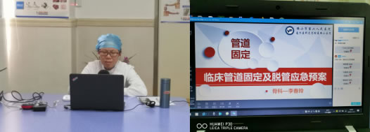 本周共完成了三节线上课程,分别是由甲状腺胸外科教育教育护士主课的《外科常见引流管道的护理》、骨科教育护士吴秀娟主讲的《深静脉血栓的预防及护理》,以及骨科李春玲护长主讲了《临床管道固定及脱管应急预案》。上课前老师提前一天通知学生,并发资料要求学生提前做好预习,下载好APP等。线上教学三位老师一位应用云班课,二位应用腾讯课堂,授课过程均平稳顺畅,无卡顿,老师声音洪亮,精神饱满,学生积极互动,主动抢答问题,参与度很高。虽是线上教学,但任课教师看着一个个熟悉的名字,虽然隔着屏幕仍然倍感亲切。学生积极通过电脑、手机APP等方式参与学习和交流讨论,授课过程井然有序,收到良好的教学效果。