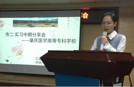 第一位上台的是中大新华学院的冯小娟,乐观开朗爱笑的她跟大家列举了实习过的每个科室带教老师的优点,分享了如何与老师们愉快相处、开心工作、快乐生活的心得。