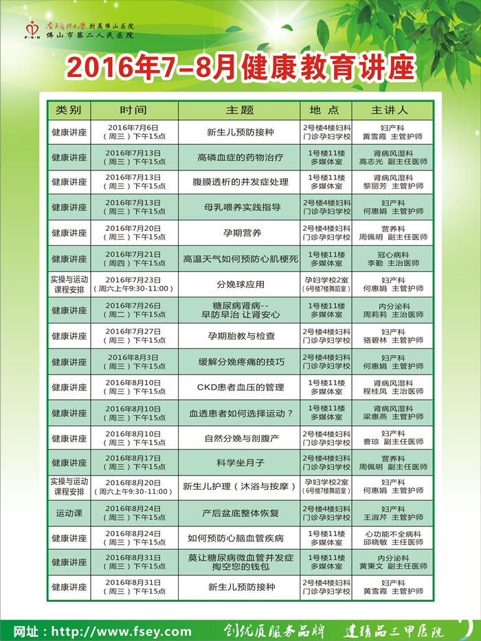 2016年7-8月健康教育讲座