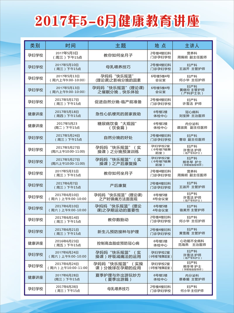 2017年5-6月健康讲座