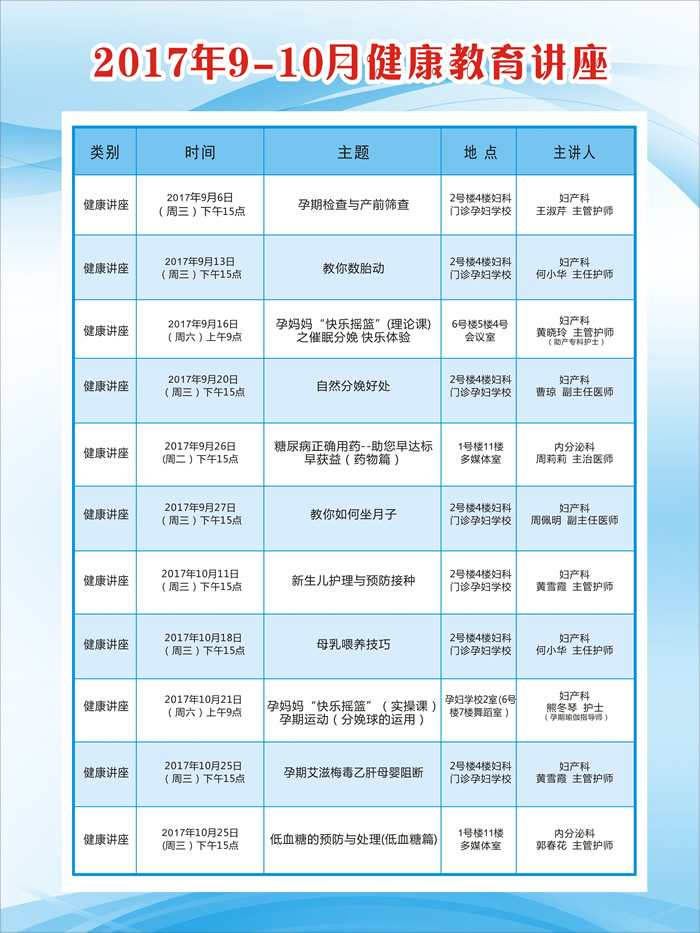 2017年9-10月健康讲座