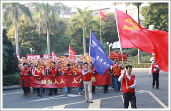 我院惠民党员义工分队参加“温爱佛山——元宵慈善文化万人行”活动 发布时间:2014-09-05 点击数: 次 本站讯:2月6日,佛山市举行首届“温爱佛山——元宵慈善文化万人行”系列活动。在“弘扬慈善”、“传播文明”、“温爱佛山”、“通济天下”四面大旗的引领下,由内地传媒界、宗教界、企业界、公益组织、党员义工队、外来工群体等组成的19个方阵队齐巡游,行通济,壮善举。我院惠民党员义工分队一行6人参与了万人方阵游行,献出爱心捐款。 分享到: 返回列表 推荐新闻 查看更多