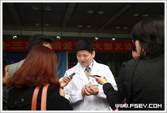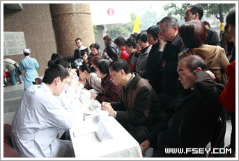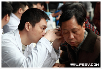 上午9点左右,耳鼻喉科在2号楼前开展了“全国爱耳日”大型义诊、耳鸣耳聋免费普查和健康宣传咨询活动。医学博士、著名中西医耳鼻喉科专家陈舒华主任医师、王富森主任医师、陈闽琪副主任医师等10多位医护人员为患者免费检查听力,传播爱耳护耳健康知识,开展丰富多彩的活动。活动中,佛山市听觉语言康复中心的的老师带着14位接受过人工耳蜗移植的儿童进行了精彩表演。他们虽然都曾是全聋儿童,但经过医护人员、语训老师、家长和社会各界的共同努力,都已走进有声世界,同正常儿童一样,上幼儿园,上小学,过着他们幸福而快乐的童年。