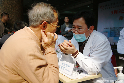 3月3日上午,医学博士、佛山市科技创新领军人才、著名中西医耳鼻喉科主任陈舒华率医护团队在医院大门口举行全国爱耳日宣传活动,为前来咨询市民免费检查耳部疾病,提供专业的耳鼻喉健康服务,针对市民的听力状况做出客观评估并提出治疗建议。在义诊的同时,还有残联听力障碍的小朋友表演朗诵和手语节目,呼吁大家重视听力疾病,普及耳疾知识。