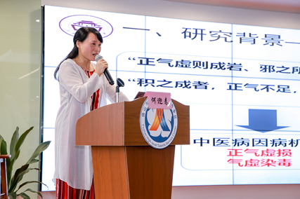 下午的讲座,由湖南中医药大学中医耳鼻咽喉科学教授、享受国务院政府特殊津贴专家、全国名老中医药专家学术经验传承工作室指导老师、中国中西医结合学会突出贡献专家、湖南省名中医田道法教授领衔的团队,包括湖南省肿瘤医院临床检验中心主任唐发清教授、湖南中医药大学何迎春教授,佛山市第二人民医院陈舒华教授、中山市中医院耳鼻喉科主任周小军教授以及佛山市第二人民医院刘湘医师等,围绕着鼻咽癌病机特点“气虚染毒”理论及辨证论治要点“益气解毒法”作了精彩讲解,并从鼻咽癌高癌家系蛋白质组学特征、鼻咽癌前病变的病理特征与辩治、鼻咽癌转移分子机制及靶分子干预研究、益气解毒方抗鼻咽癌分子的机制研究以及鼻咽癌肿瘤微环境特征及益气解毒方干预等方面作了详尽的阐述,令与会代表们耳目一新。代表们与专家们就EB病毒在鼻咽癌发病中的作用机制及其临床意义进行了热烈的讨论。