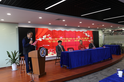 会议由佛山市第二人民医院耳鼻咽喉科主任陈舒华教授主持。首先进行了佛山市中西医结合学会耳鼻喉科专业委员会换届选举,佛山市中西医结合学会秘书长郎江明教授宣读了第二届耳鼻喉科专业委员会委员名单,陈舒华教授连任中西医结合学会耳鼻喉科专业委员会主任委员,虞幼军、李湘、陈勇明、李振安、李灿萝、黄东辉、文凤妮、陈闽琪、刘跃辉、梁小泉等10位专家被选为副主任委员。郎江明秘书长为陈舒华主任委员颁发了证书;陈舒华主委为10位副主任委员颁发了证书。中国中西医结合学会耳鼻咽喉科分会秘书长、复旦大学眼耳鼻咽喉医院副院长张天宇教授代表中国中西医结合学会耳鼻咽喉科分会对佛山市中西医结合学会耳鼻咽喉分会的换届选举表示热烈祝贺并发表了热情洋溢的致辞。