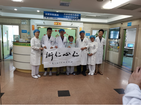 由于手术效果良好,彻底治愈了患者鼻腔反复出血的病症,今年6月10日,患者特意书写了一副“仁心仁术”的书法作品,亲自送到了陈舒华手中,感激地说道:“耳鼻咽喉科的全体医护人员治愈了我的病,照顾我也是无微不至。我感谢这里的所有人,谢谢你们!”