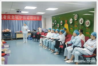 心脏停搏在院内院外均可发生,在院内重症医学科是其高发区域, ICU医护人员对于心脏停搏抢救的能力直接影响患者的抢救成功率,为促进ICU护理人员的急救应急能力,根据美国心脏协会(American Heart Association ,AHA)基础生命支持(BLS)培训计划,李俭欢护士长对ICU全体护理人员进行BLS培训。课程主要教授护理人员如何正确识别成人、儿童、婴儿患者多种致命性的紧急情况,并且能以安全、及时和高效的方式实施心肺复苏(CPR), 如何正确使用自动体外除颤器 (AED)和解除呼吸道梗阻。