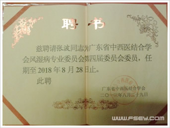 张波主任当选省中西医结合学会风湿病专业委员会委员