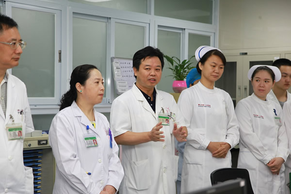 在新的病房查看了一圈,并听取汇报后,市二医院党委书记、院长李逸群首先感谢肾病风湿科、皮肤科顾全大局,积极配合医院的统筹安排,义无反顾搬迁到新的环境。同时,他表示,肾病风湿科有良好的学科基础、有优秀的医护团队,医院已经明确要将肾病风湿科打造为重点学科;接下来,医院计划将血液透析中心扩大,相信届时整个肾病风湿科又将有新的变化。希望大家继续提高医疗技术,在硬件和软件上提高一个档次,努力将肾病风湿科打造成广东省高水平专科、佛山一流专科。