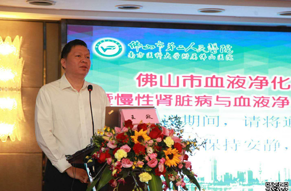 肾病风湿科张波主任主持了开幕式。市卫计局王政局长、香港中文大学蓝辉耀教授、佛山市血液净化质量控制中心孔耀中主任、我院李逸群院长先后致辞。