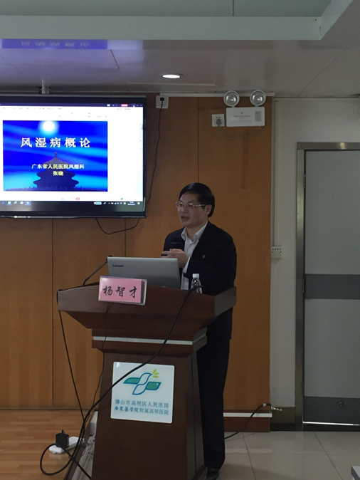 我院范文奎副院长主持开幕式。高明区人民医院院长杨智才教授及佛山医学会风湿病学分会主任委员、佛山市第一人民医院副院长陈国强教授分别致辞。