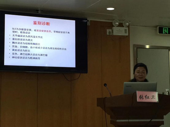 佛山风湿病学会副主任委员、佛山市第一人民医院风湿免疫科副主任张红卫教授在大会上作了题为《系统性红斑狼疮诊治进展》的演讲,在大会上张红卫教授提出系统性红斑狼疮将来诊治的展望,期望减撤激素成为可能、HCQ作为基础治疗 、抗B细胞、抗干扰素、抗白介素-6等靶向治疗的日益成熟 、达标治疗的实现 。
