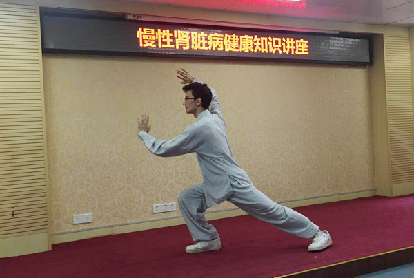 在有奖问答环节,大家非常踊跃,争先恐后地举手抢答,气氛十分活跃。活动最后,康复科中医师柳涛还为大家表演了杨式十六式太极拳。太极可以舒畅筋骨、调节内脏、健脾补肾,既是老人也是慢性肾脏病患者很好的一项运动。柳涛中医师流畅、精准、到位的动作,赢得了大家热烈的掌声。大家都表示,本次讲座的内容让他们受益匪浅。