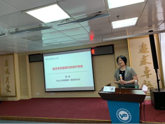 中山大学附属第一医院肾内科主任、中国中西医结合肾病专业委员会副主委阳晓教授以《腹透患者腹膜功能保护策略》为题进行了精彩的专题演讲,分别从腹膜衰竭的分型及如何保护腹膜功能展开详细的讲述。阳晓教授指出,长期腹透患者可能出现进行性腹膜纤维化、腹膜高通透性,甚至超滤失败,因此,要定期评估腹膜功能,减少腹膜暴露于常规透析液高浓度葡萄糖是保护腹膜的重要策略,预防腹膜炎、保护残余肾功能、RAAS阻断等药物干预措施均在腹膜保护中发挥重要作用。