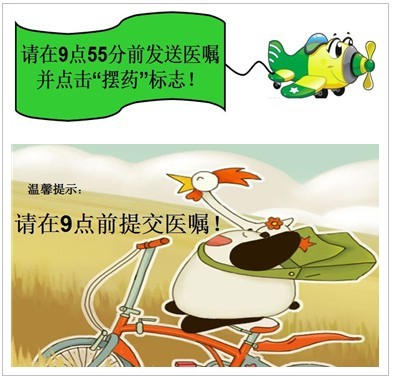 在现阶段,我们组员收集大量资料,为我们QCC小组下一阶段的工作做好充足准备。在“如何提高医嘱发送率”方面,我们为科室设计了一些“温馨提示”标识,标志牌清新生动而又不失其提示作用,每当科室内医务人员看到这些标识,都会再一次给自己提个醒,知道必须要赶快写好医嘱,准时提交和及时发送,确保下一个环节的顺利进行。