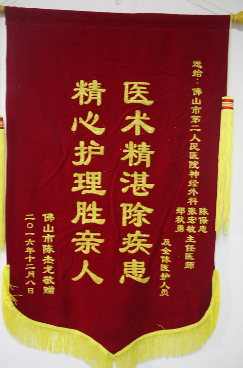 患者送神经外科及全体医护人员锦旗