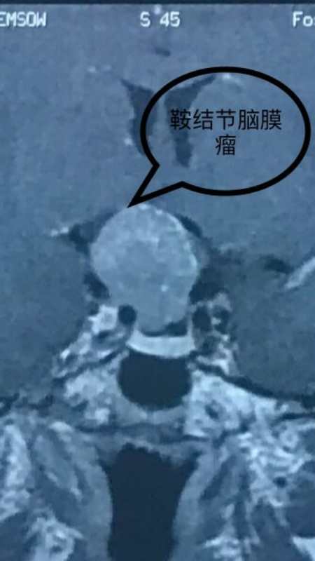半年前,龚女士开始出现头痛,以为小毛病,平时间断吃一些止痛药,继而出现了双侧视力变得模糊,且头痛越来厉害,严重影响了日常生活,来我院就诊查头颅磁共振确诊鞍区脑膜瘤。肿瘤的基底来源于鞍结节和鞍膈,视神经视交叉及邻近结构严重受压移位,视野图检查右侧眼睛视力全盲,左侧眼睛部分盲(颞侧盲)。