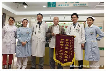 其实患者雷婆婆今年已九十五岁高龄,于2016年12月21日早突发高热,意识昏迷经救护车送入我院,在我院医护人员的及时救治下,于当日中午送入呼吸内科重症监护室。入院后,患者较为烦躁,病情危重,在科室医护人员的耐心解释病情和鼓励下,患者情绪逐渐稳定,并积极配合医生的治疗。胡佩村主任及梁伟权副主任医师根据病情为其精心诊疗,系统治疗后,雷婆婆病情得到缓解并从重症监护室转入普通病房,身体恢复很快,在护士的陪伴下还能进行短时间的床边活动,并于1月18日康复出院。病人家属怀着万分感谢的心情向胡主任、梁医生及全科医护人员送上锦旗和感谢信,当面表达了对科室医护人员感激,不断地说:“非常感谢,非常感谢,非常感谢!”