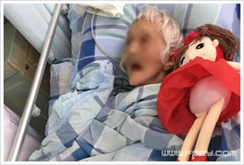 “HELLO,姐姐!”“HELLO,姐姐!”每天早上医护查房都要跟这位床头躺着红色布娃娃的雷婆婆来一次愉快的对话。“一二三,四五六……”是大家经常用来对话的内容,每当护士们说完前面一句,雷婆婆后面一句马上跟了出来,不禁让大家都开始佩服雷婆婆的反应速度。查完房后雷婆婆也会伸出手摸摸查房医生的脸,嘴里说着只有自己能听懂的语言。这个画面也让呼吸内科的重症病房多了一抹亮丽的色彩,使得病房显得更加温馨。