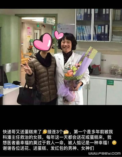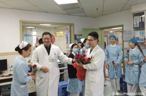 在这节日里,更让人感动的是:一位多年前支扩咯血被主管医生潘宝璇主任抢救挽回生命的年轻女孩,每年的3月8日这一天,会准时送来鲜花或蛋糕,表达对呼吸科医护人员的救命之恩,连续6年从没间断。潘主任感叹道:“作为一个医生只要能救活人就不在乎要付出多少艰辛,最幸福和让人感动的是莫过于救人一命,被人理解认同。”
