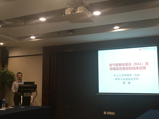 廖槐教授是广东省医学呼吸分会介入呼吸学组成员,曾两次赴国外进修呼吸重症及介入诊疗技术,他给大家讲解了《BALF在呼吸系统疾病诊治中的应用价值》。