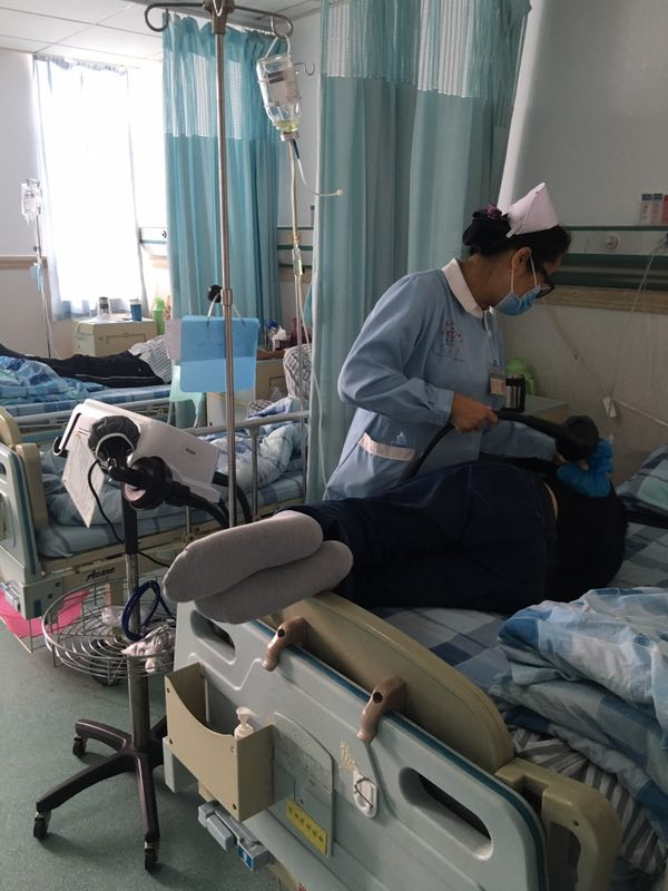 吴某某,一位40几岁的男性患者,因患支气管扩张入住我科,患者神情焦虑地谈到:“我已经看过很多间大医院了,都不见好转,特别是我的痰咳不出来,堵着难受,动不动就气促”。我们非常理解他的心情:这个年纪的他本是家庭的顶梁柱,如今却成家里的负担,不能如常人一样追逐自己的事业,却饱受着病痛的折磨,大大降低了生活质量。我们护理组长郑玉云见状,很快地对此患者情况制定了一系列护理措施,简单的一招减轻了患者的病痛的困扰,就是对患者进行体位性机械排痰。