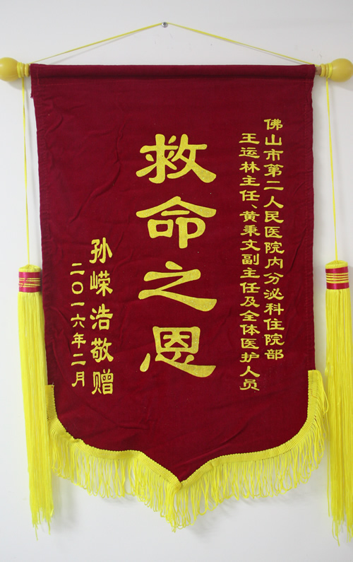 患者送内分泌科王运林主任、黄秉文副主任医生及全体医护人员锦旗