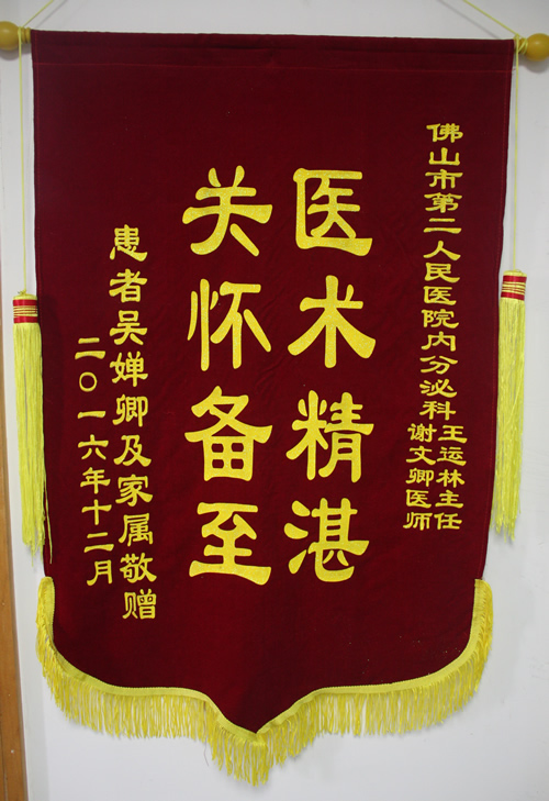 患者送内分泌科王运林主任及谢文卿医师锦旗