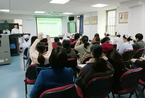 日前,为进一步提升护理人员对糖尿病治疗的全面认知,更好地促进糖尿病治疗成效。专科小组组织各科联络员开展了2018年的第一次会议。会议由蔡春媚护士长主持,护理部副主任李燕如对糖尿病专科小组的工作作指示,营养科曲黔营养师进行糖尿病饮食知识授课。