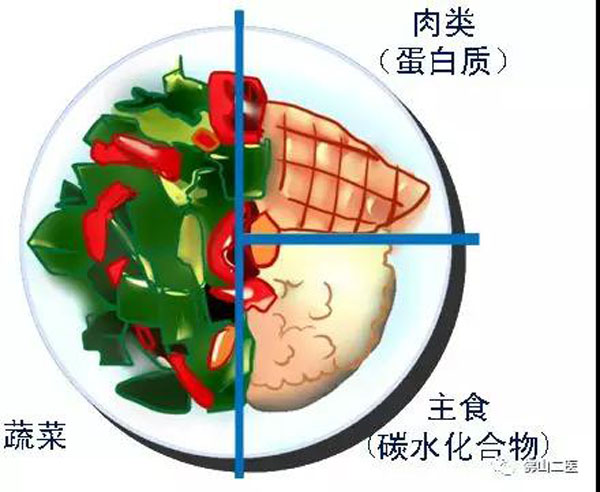 将餐盘想象成由三部分组成,分别放置蔬菜、主食和肉类,体积比例约为2:1:1