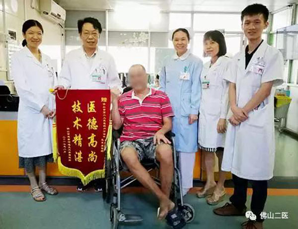 其中一位面临截肢危险的难治型糖尿病足在我院多科治疗后,保住了自己大部分右足,也恢复了往日的自信,出院后在家人的陪同下,给内分泌科医护人员送来了一面锦旗。