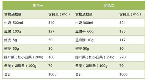 获得1000mg钙的食物组合举例