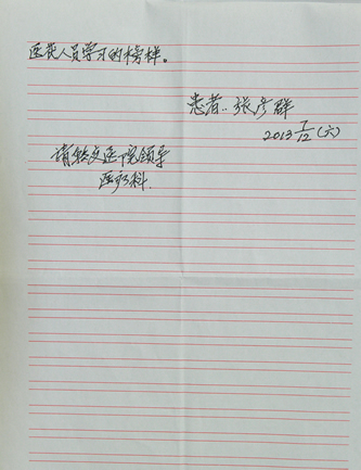患者送疼痛科敖兴亮主任感谢信