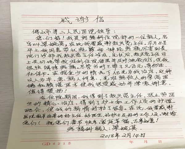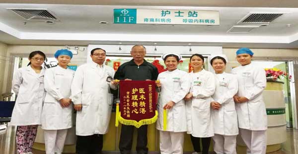 余叔住院后,在敖主任的综合治疗下,疼痛得到明显缓解,生活质量得到大大的提升。同时,住院期间感受到了护士们无微不至的照顾,并深深佩服医生高超的医技和高尚的职业道德,于是,便有了开头送锦旗的一幕。