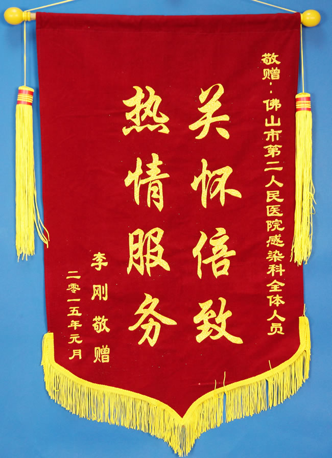 赠感染科全体人员锦旗:热情服务 关怀倍致
