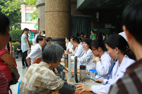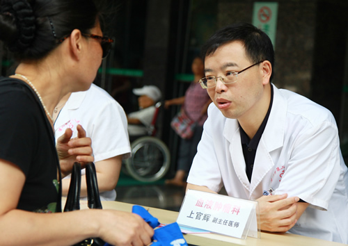 5月11日上午,我院血液肿瘤科主任汪宝贞、上官辉副主任医师、黄韵映主治医师、马庆辉主治医师及妇产科陈守琴主治医师等医务人员在医院大门口进行地贫日义诊活动,发放宣传册、普及地贫知识,强调地贫难治但可防,呼吁产妇重视地贫筛查,降低重症地贫儿的出生率。