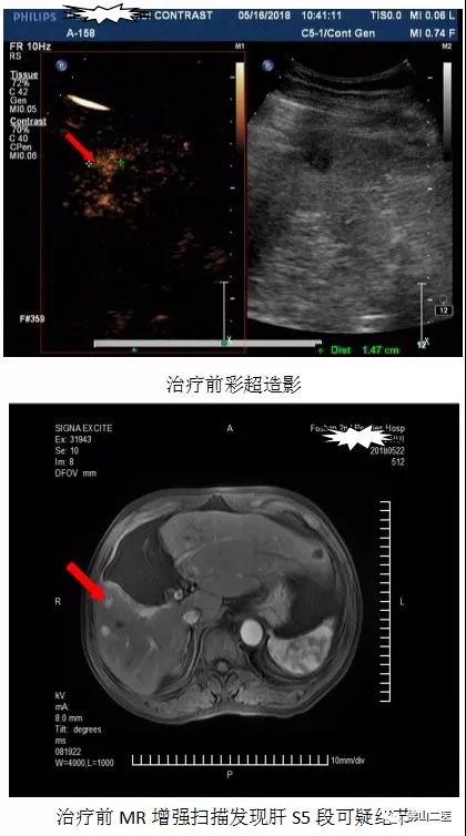 肝脏B超造影检查立刻进行。结果发现黄伯肝S5包膜下低回声结节,约15*11mm,性质待查,结合超声造影,考虑恶性结节(HCC)可能;肝S6包膜下低回声,约14*10mm,性质待查,结合超声造影,考虑良性结节(增生结节)可能。