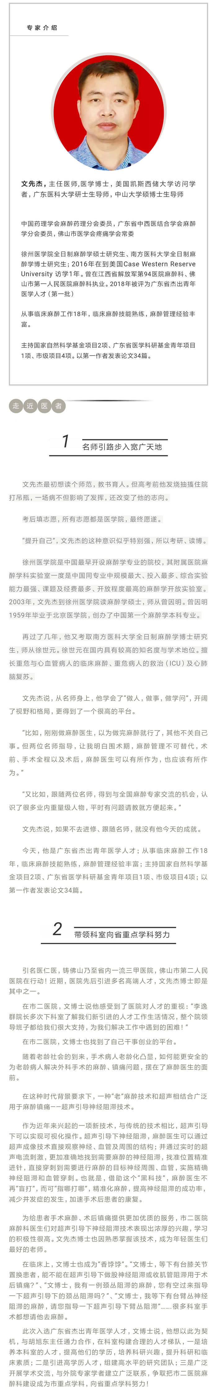【重磅】我院文先杰博士入选第一批广东省杰出青年医学人才 发布时间:2018-10-14 点击数: 次 近日,根据《广东省卫生计生委关于广东省医学领军人才和杰出青年医学人才名单(第一批)的公示》结果,全省范围内遴选出第一批广东省医学领军人才60名(含10名中医药领军人才)、广东省杰出青年医学人才600名(含100名杰出青年中医药人才)。佛山市第二人民医院麻醉科副主任、医学博士文先杰入选广东省杰出青年医学人才。 下面,我们一起来看看文先杰主任的介绍: 来源:微信公众号 采写:黄晓晴 发布:梁文福 分享到: 返回列表 推荐新闻 查看更多