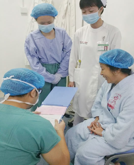 “术前核对的重要性不言而喻,再怎么细致也不为过。同样,人文关怀也不仅仅是一句华丽的口号,更多的是朴实无华的陪伴和日复一日的行动证明。今天所见让我很满意,比以前规范的多。特别是我看到阿伟和阿辉两位大个子在核对患者的时候弯下腰或者蹲下来,我觉得很感动。待病如亲,好样的,值得学习!”李主任满意地说道。