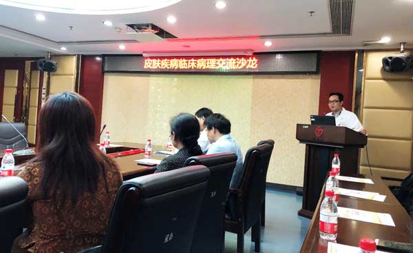 据我院病理科主任江浩介绍,皮肤疾病在病理诊断中较为疑难,疾病种类很多,单病种有上千种,不同疾病可有相似的皮损及病理形态学改变,很多疾病缺乏典型的病理特征,鉴别难度很大。希望这次交流活动能带给我们对皮肤疾病诊治的新思路,提升我院皮肤疾病的诊治水平。