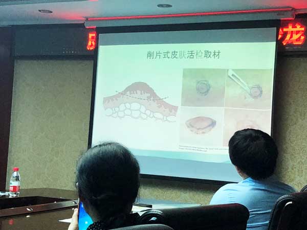 交流会上,罗峰博士同时与我们分享了美国皮肤病理诊断的工作现状和美国最新的皮肤活检技术-削切式皮肤活检技术,我院皮肤科雷晴医生、张瑶医生也在会上分享临床典型病例。