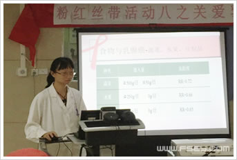 本站讯:金秋十月,秋高气爽。10月17日下午,我院胸外乳腺科成功举办了第八届粉红丝带“关爱乳腺,重塑健康”活动,向参加活动的病友们介绍了乳癌的治疗,饮食及PICC管的护理。此次活动得到了胸外乳腺科陈岸主任及程彩萍护长的大力支持,胸外乳腺科陈卫军主任医师及临床营养科周佩明副主任医师也在百忙中抽空为患者授课。该活动吸引了院内外近五十多名的患者前来参加。