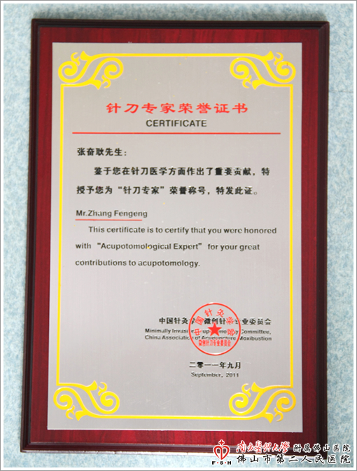 我院张奋耿主任中医师荣获全国“针刀专家”称号