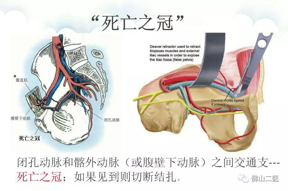 改良Stoppa入路,即腹部正中入路。这种手术方法操作在血管、神经旁,也容易造成死亡冠血管直接或牵拉损伤,使血管断端回缩至盆腔或闭膜管导致止血异常难,但手术视野比髂腹股沟入路宽广,较髂腹股沟入路操作简便,尤其在髋臼四边体处复位、置板、拧钉等环节更为方便,可以缩短手术时间、减少术中出血量。