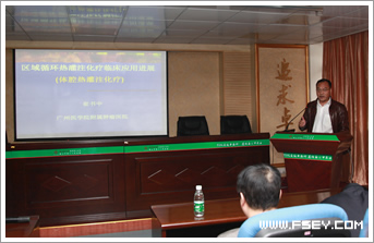 讲座由区小卫主任主持,崔书中教授结合自己在腹部肿瘤治疗和诊断方面丰富的临床经验和胸腹部肿瘤热疗的研究成果,向与会者就体腔热灌注治疗在胃肠癌、肝癌、妇科肿瘤、胸腔肿瘤等方面的应用和良好的疗效进行介绍。与会者认真听取讲座,对崔教授的介绍都表现出浓厚的兴趣,并认识到简单而微创的体腔热灌注治疗对肿瘤病人的神奇效果。